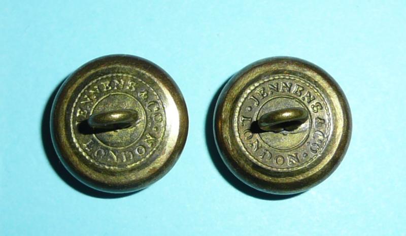 Each circa 14.5mm in diameter, fixed shank and maker marked Jennens & Co, London. Some light tarnishing to gilt otherwise in very good condition. Pre 1901.
