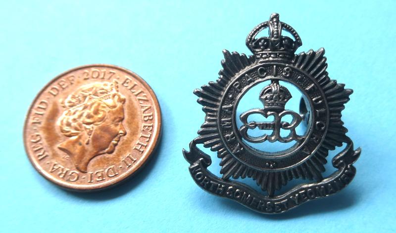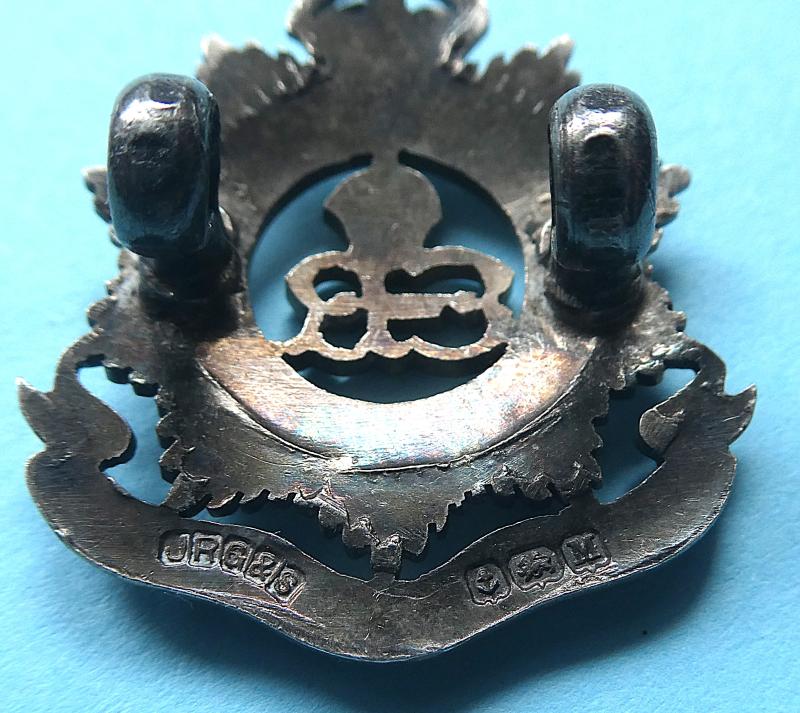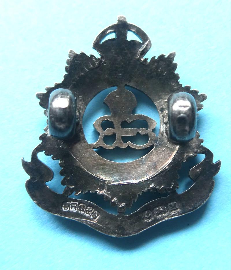 A lovely small badge with maker's mark for Gaunt (JRG & S) and Birmingham Assay stamps with date letter 'M' for 1936. Circa 27mm tall. Worn as a field service side cap and collar badge in this size. Cypher of the abdicated monarch King Edward VIII to centre. A rare and short lived badge.
