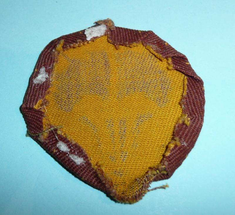 A really good WW2 printed example of the red / brown fox's mask on a yellow background, removed from uniform. Some traces of glue paper to reverse on folded edges. Scarce.