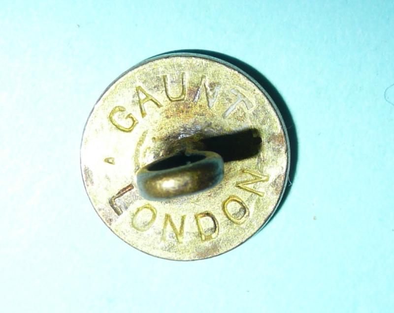 Circa 13.5mm in diameter, fixed shank, maker marked Gaunt London. Engraved flat gilt button. Ripley No 616 refers. Comm GrSt