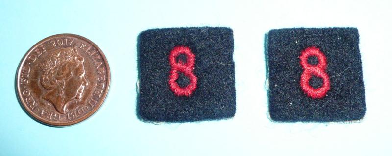 A matching pair, red on blue, circa 20mm square. In unissued condition. Happy to be corrected. Comm Pali