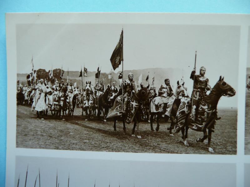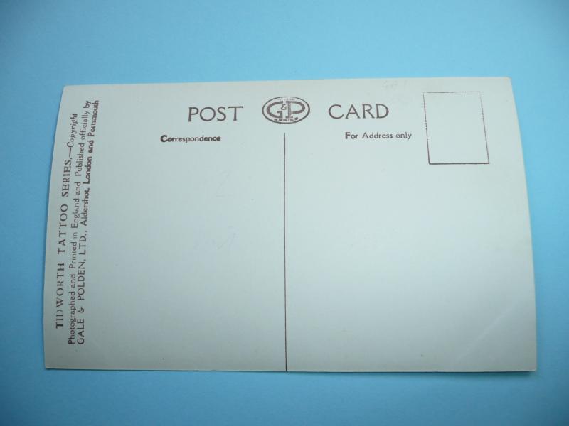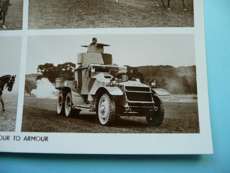 Gale and Polden Ltd, postally unused, corner wear from storage in an album, but showing the evolution of cavalry at a military tattoo from medieval mounted knights to a Lanchester Armoured Car. Coll