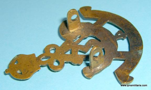 Raised in 1902, this is the pre 1930 pattern. with both the Arabic numeral for the number 4 in the centre of the bugle and the number 4 below. Die cast in bronze, originally blackened, with two original integral lugs to the reverse. The K on King appears to have been miss-struck otherwise in good condition. Very scarce.