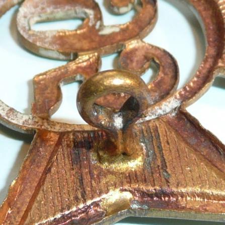 An original 1874 - 1881 pre Territorial Glengarry badge, die struck in a coppery brass with two original brass loops to the reverse, mounted east-west. In good condition with sharp detail.