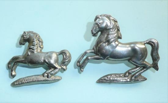 Rare 3rd Kings Own Hussars Rearing Horse White Metal Facing Pair Collar Badges