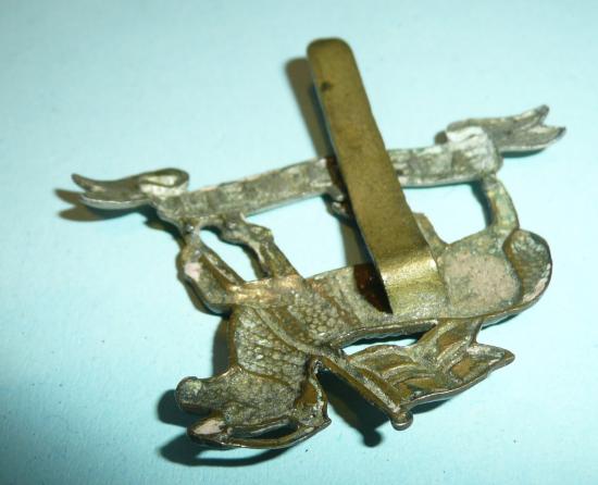 Seen some service but otherwise in good condition with original long slider. Halo a little flattened, as often found on this pattern. There is a gilt solder run down from the front hoof over "The" on title scroll. Actually quite a hard badge to find.