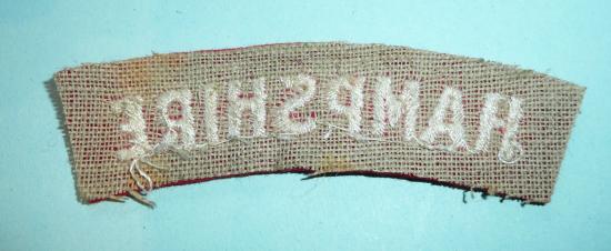 WW2 Hampshire Regiment Embroidered White on Red Cloth Felt Shoulder Title