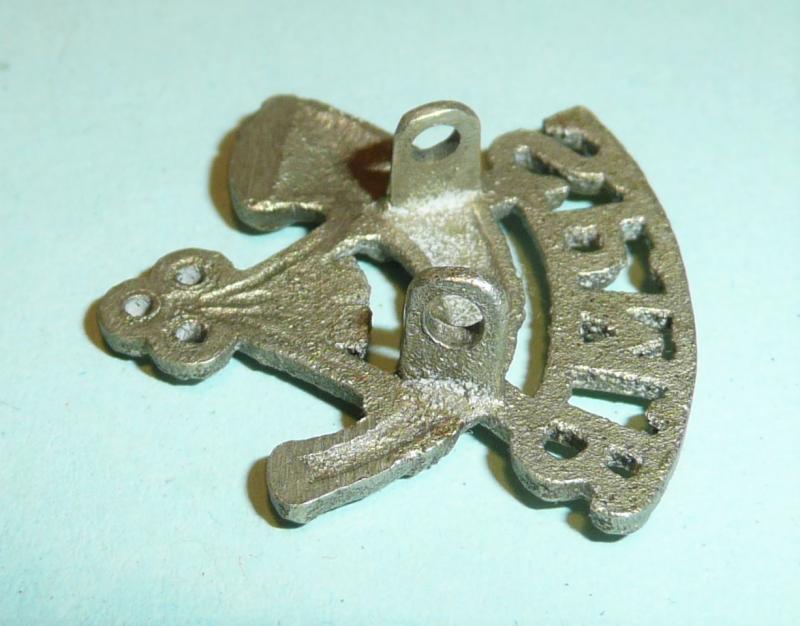 Indian Army ( Madras ) - Southern Province Mounted Rifles (SPMR) Cast White Metal Field Service Cap / Collar Badge