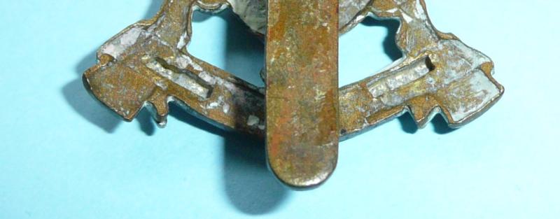 Bi metal cap badge in good condition with original slider and two sweat / braising holes to the reverse of the scroll. With sharp detail. An all brass economy badge was issued in 1916.