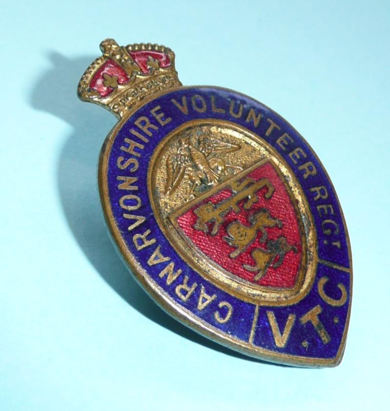 WW1 Home Front - Wales, Welsh - Carnarvonshire Volunteer Regiment VTC Gilt & Enamel Mufti Lapel Buttonhole Badge