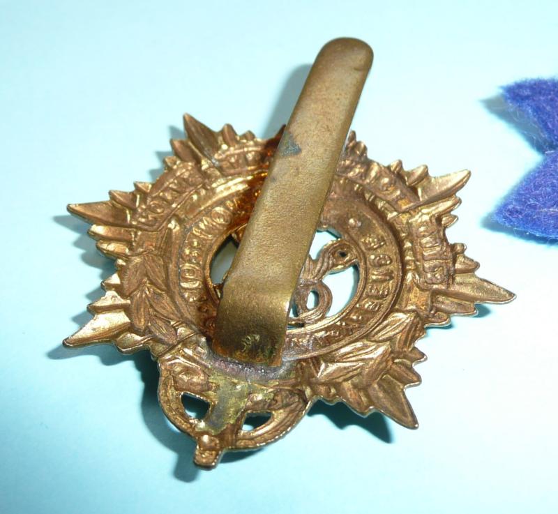 Original slider to reverse with correct blue backing cloth for wear on the beret. The GV RASC badges are scarce. It is a mystery as to why this should have be such a hard badge to find; the assumption being that earlier non Royal title cap badges were to be used up first.