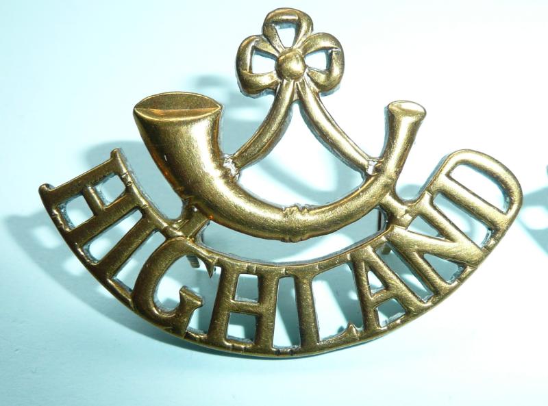 Highland Light Infantry HLI Matched Pacing Pair of Brass One Piece Shoulder Titles
