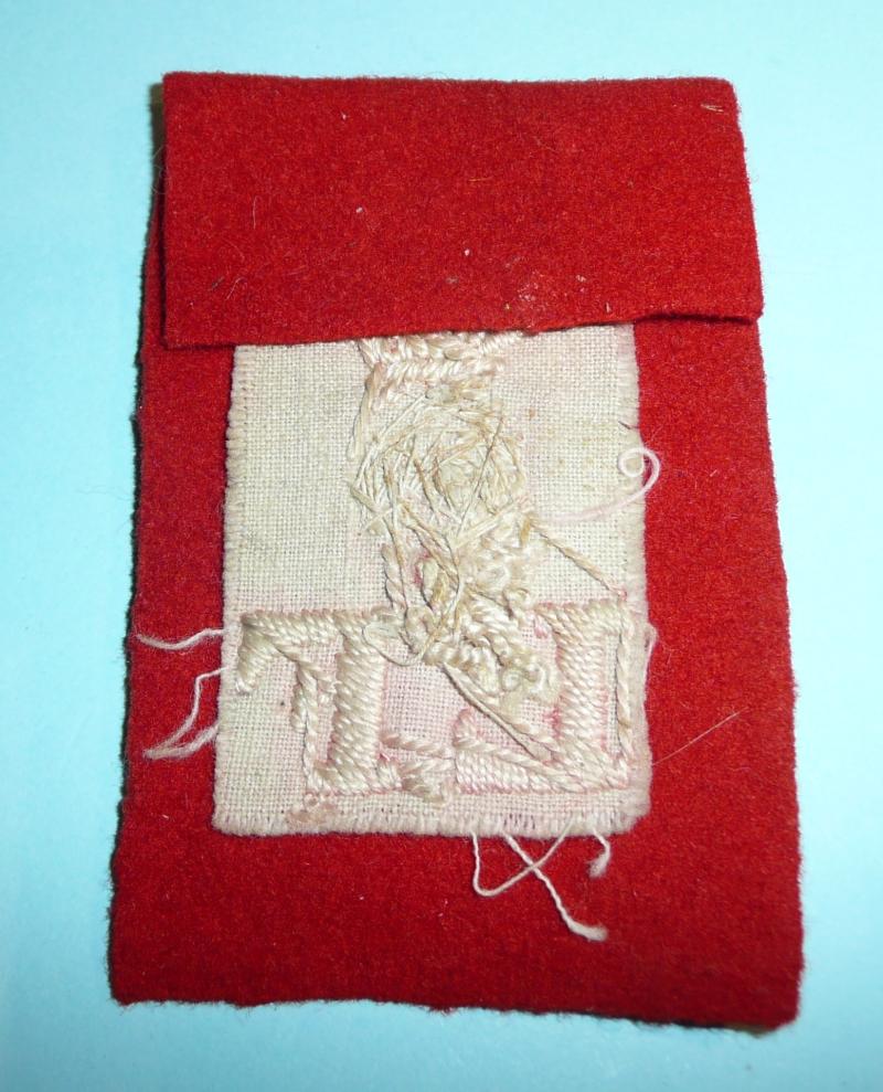 As worn in the 2nd Boer War and WW1 when in tropical theatres. Such flashes were cut from the shoulder straps of discarded red tunics. A mark on the padded ball of the grenade otherwise in very good condition with little signs of wear.