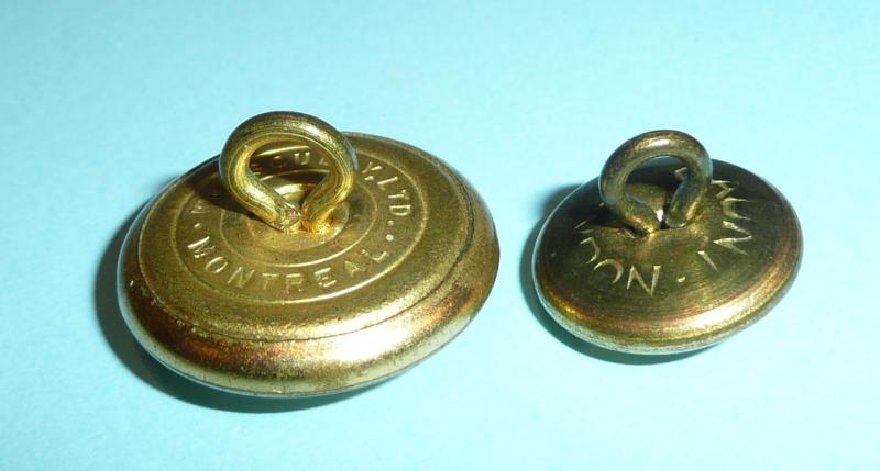 Circa 25mm and 18mm in diameter, fixed shanks, maker marked DWm Scully Montreal and Gaunt London respectively. Gilt bright, slight colour variation given different makers.