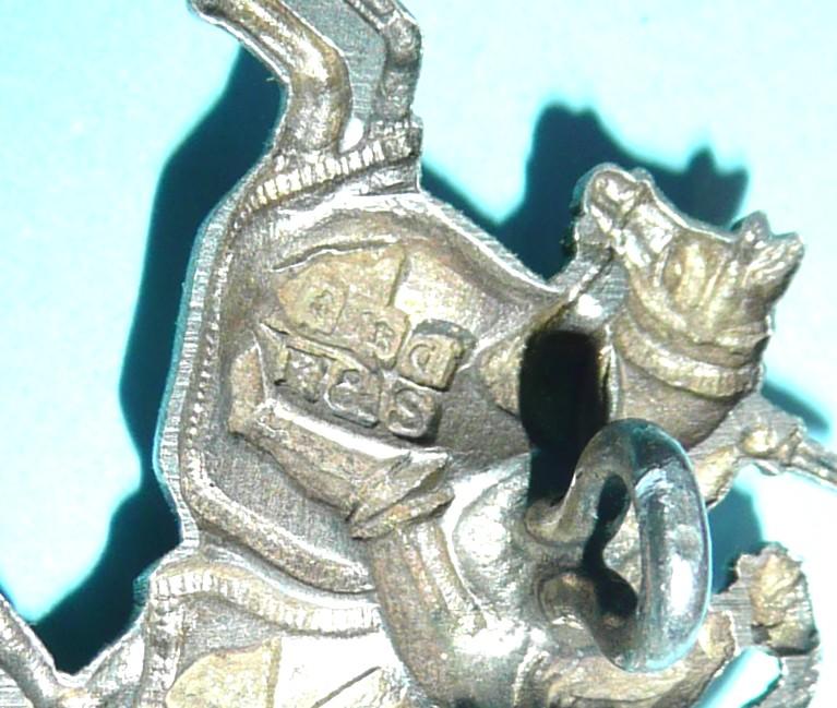 Rare pair of officers hallmarked silver die struck collar badges with two original silver loops to the reverse of each. The Thane of Fife bearing makers details for " F & S " (Firmin and Sons) and Birmingham hallmarks for 1903 (date letter 'd'). In good condition with all fiddly bits present and correct.