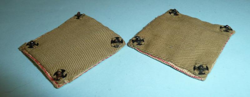 A matched and facing pair of printed red leaping gazelles in a white circle in a red square with a narrow white border, folded for wear and sewn to Khaki Drill backings with four press stud poppers to the reverse of each. The stylized version. ln very good overall condition. According to Oliver Lock (Airborne Insignia Vol 2) also worn by those Italians who had opted to fight on the allies side as F Recce Squadron.