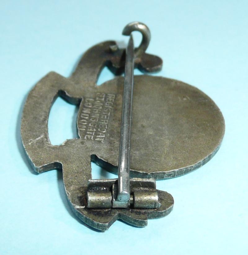 In very good condition with original stout and functional pin fitting. It has the organisation's address embossed to reverse. It has some age to it. Coll