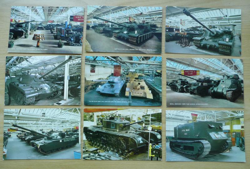20 different images, all postally unused of the collection of tanks and related items in the Bovington Tank Museum, Dorset. All postally unused (but three different printers - see final photo). They would make a useful set for a school project or display. Some age to these as the museum layout is now substantially different even though the tanks remain. If you have not been it is a must!