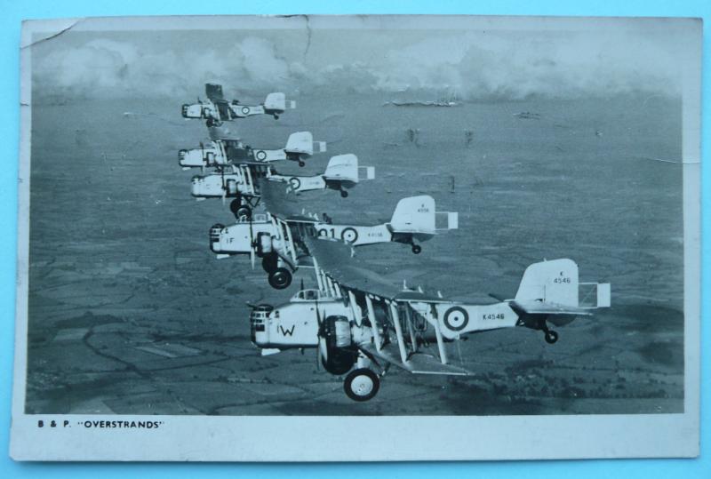 An original 1941 postally used postcard of a flight of B & P (Boutlon Paul) Overstrands. Some small tears and edge crease but a scarce image of this biplane Also a modern copy of a photograph taken circa 1933 of an stationary Overstrand with its crew.